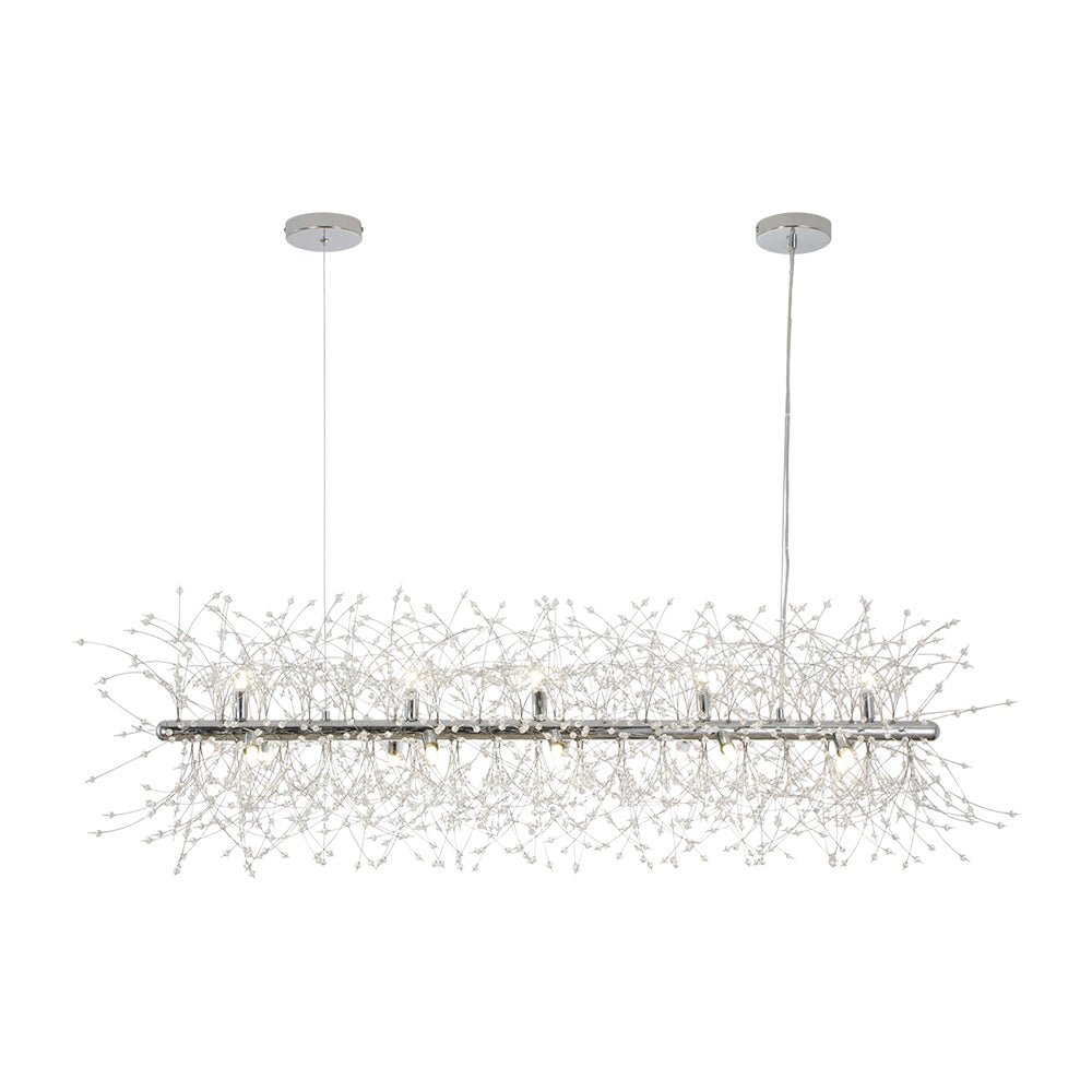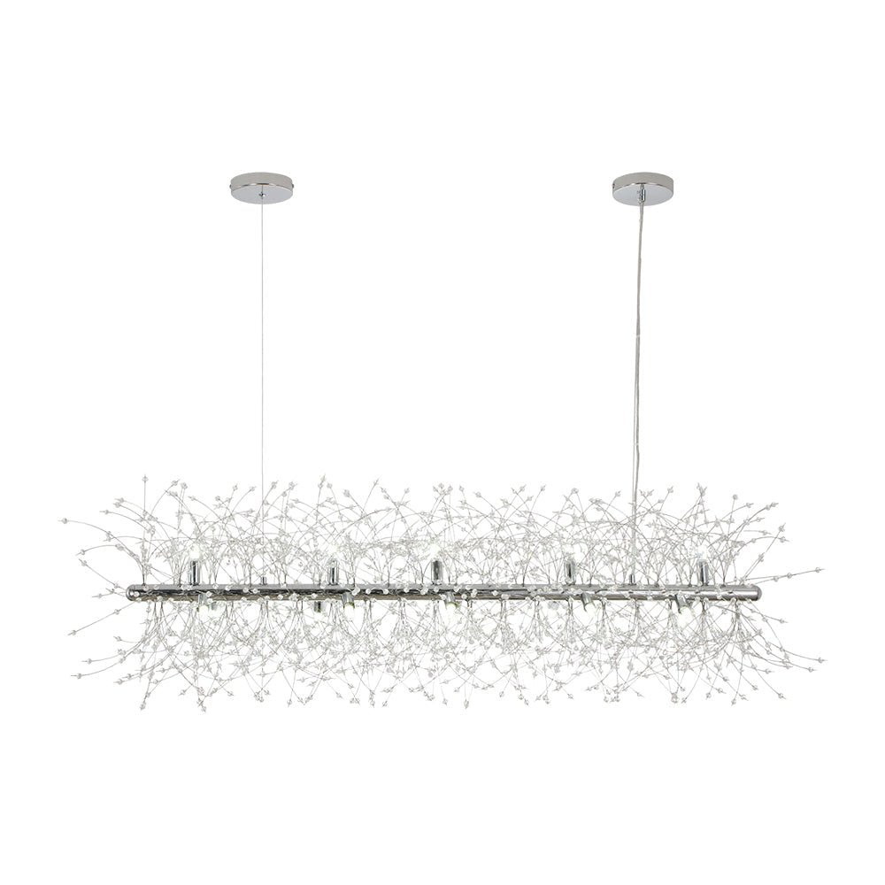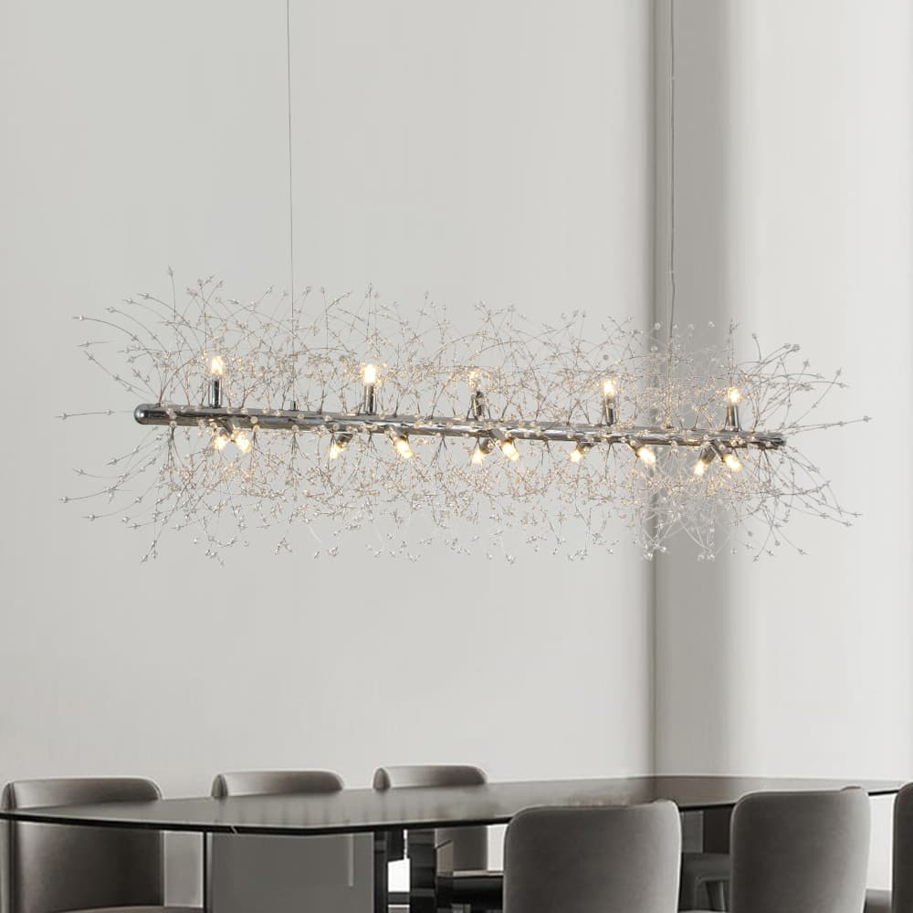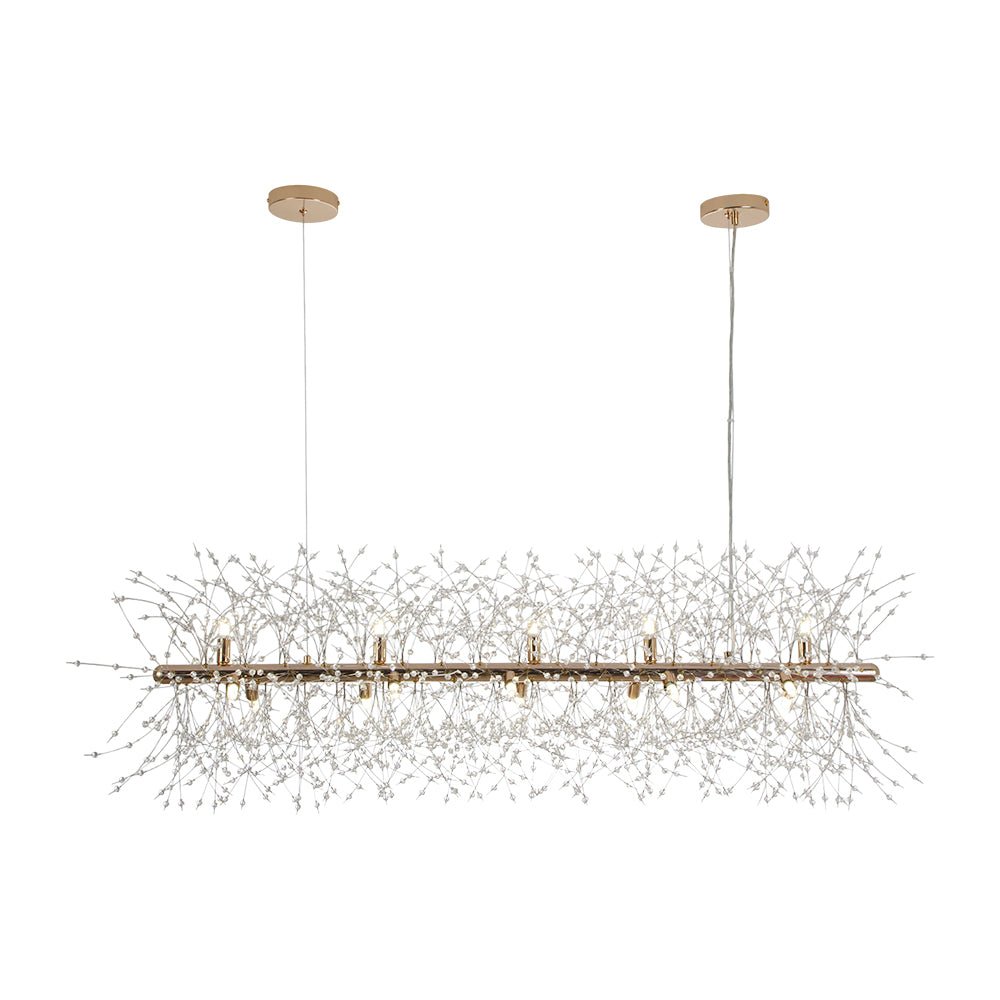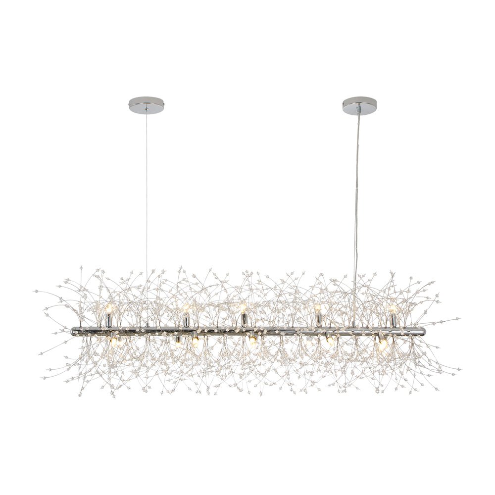 Moderner, glamouröser, linearer Kronleuchter aus Kristallglas mit 15 Leuchten im Sternen- und Löwenzahn-Design.