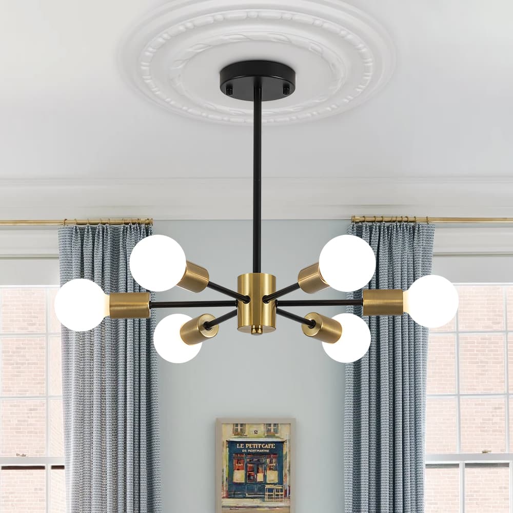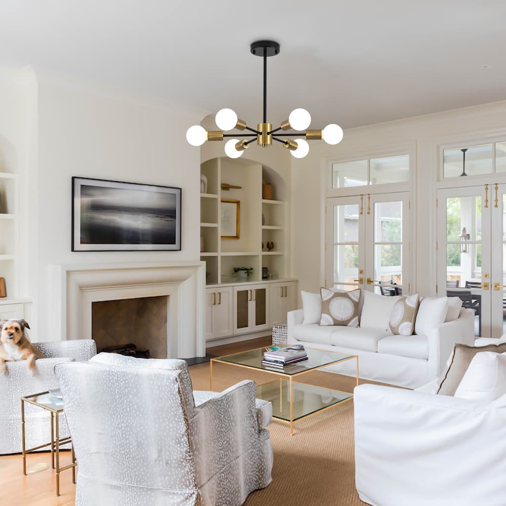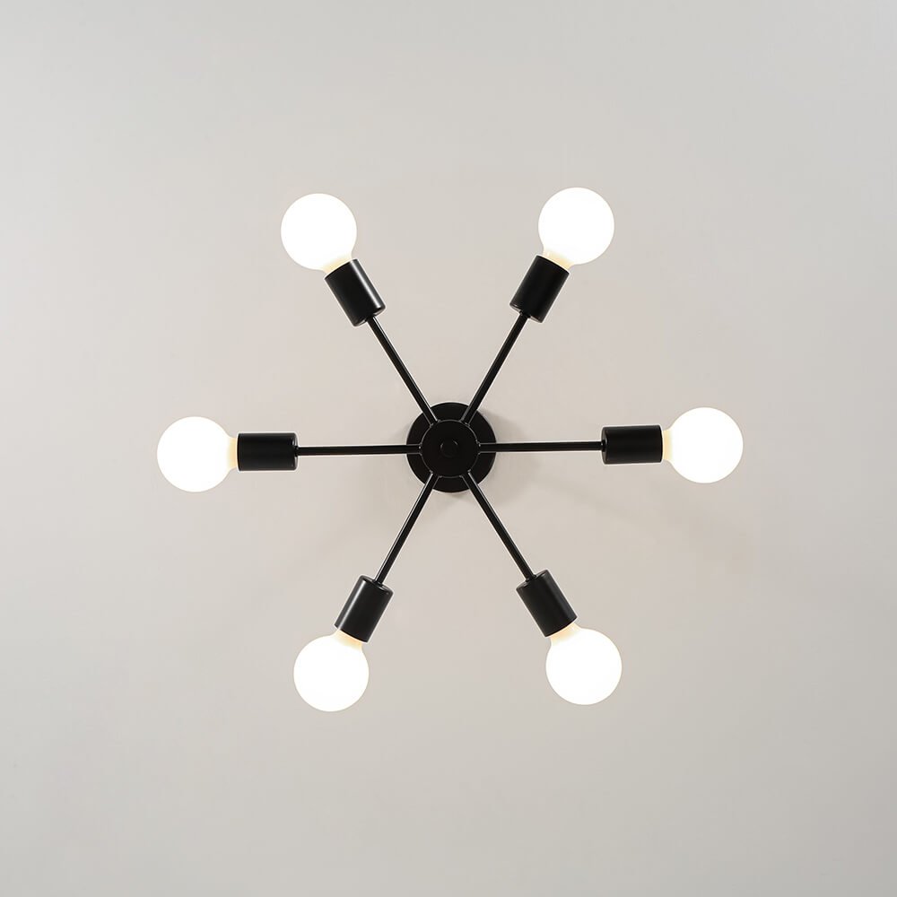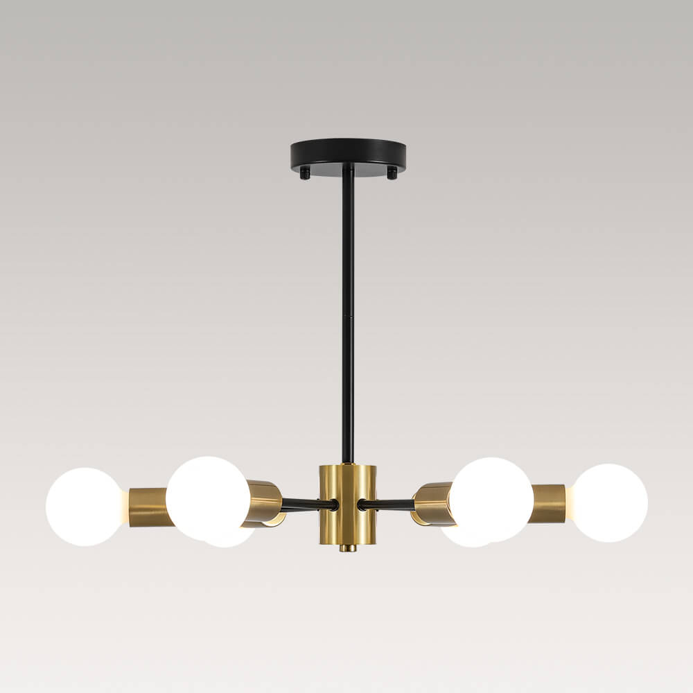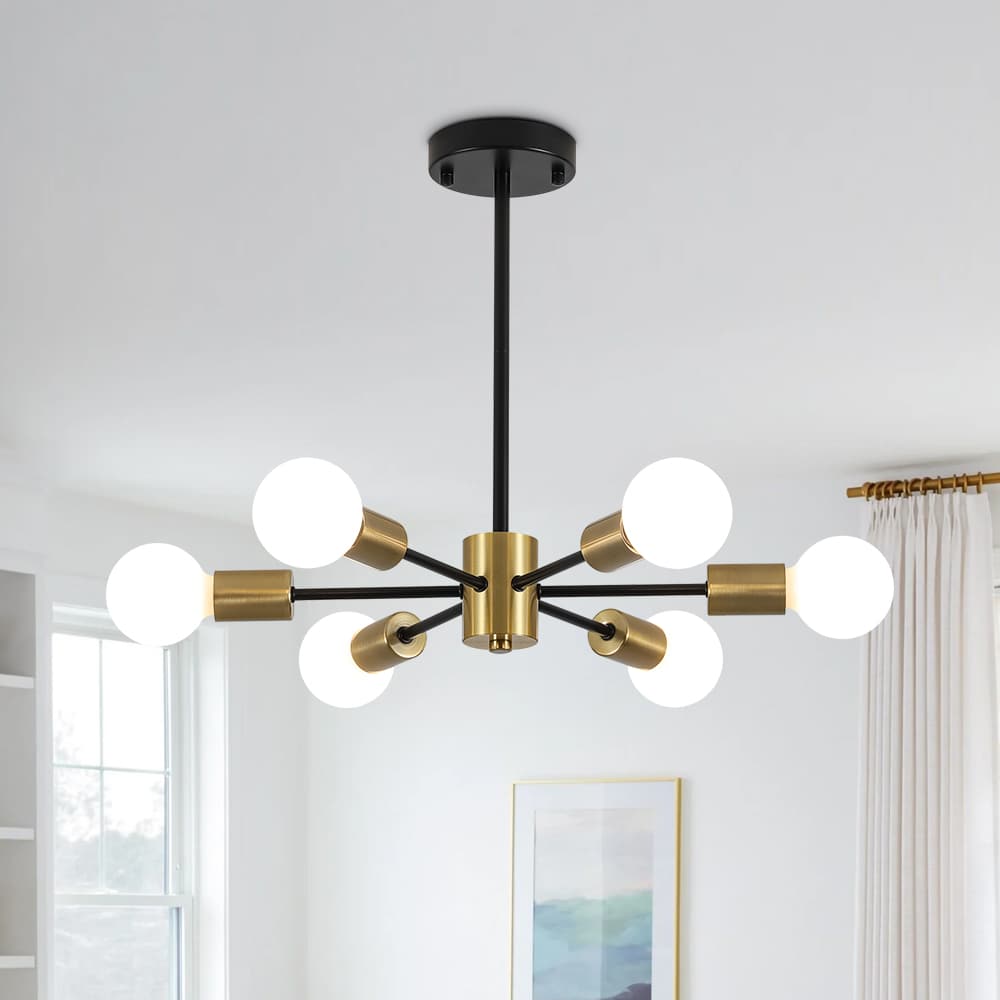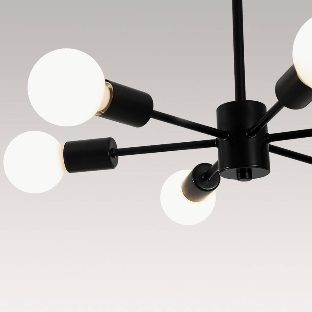 Elevate your space with the striking design of this 6-Light Sputnik Chandelier — a bold, mid-century modern statement piece that blends form and function. Featuring six arms radiating from a central hub, this fixture delivers dynamic symmetry and all-around illumination, perfect for any modern or contemporary interior. This minimalist chandelier brings timeless sophistication and futuristic flair to your home.