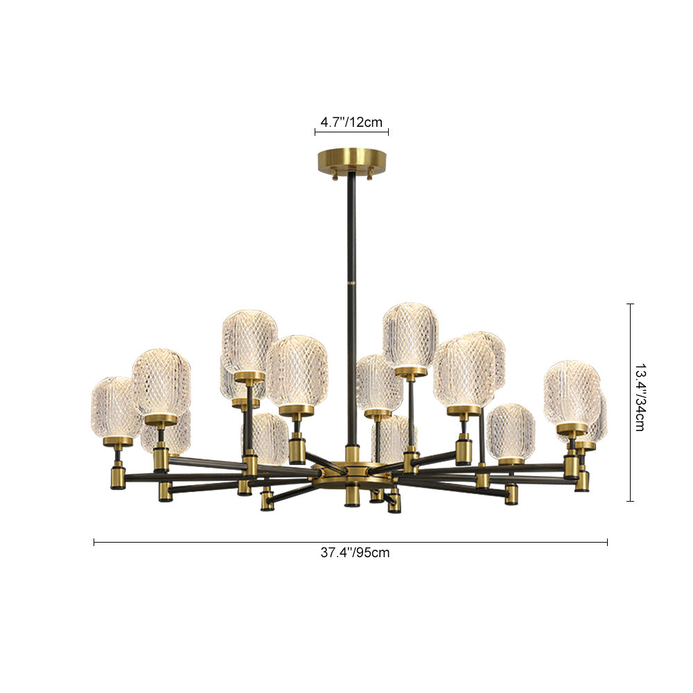 Dieser exquisite 15-flammige Kristallglas-Kronleuchter vereint makellose Handwerkskunst mit zeitloser Eleganz und verleiht jedem Raum einen Hauch edler Vornehmheit. Mit seinen 15 klaren, zylindrischen Kristallglas-Lampenschirmen, die anmutig an parallelen Stäben hängen, die von einem zentralen Rohr ausgehen, erzeugt der Kronleuchter einen faszinierenden Lichteffekt, der den Charme Ihres Zuhauses unterstreicht. Der markante Rahmen in Bronze-Optik bildet einen schönen Kontrast zu den klaren Lampenschirmen und vermittelt ein unverwechselbares Gefühl von Luxus. Ausgelegt für 15 G9-Glühbirnen (nicht im Lieferumfang enthalten) wirft er ein warmes, verführerisches Licht, das die Atmosphäre jedes Raumes bereichert. Ideal für Esszimmer, Kücheninseln, Restaurants, Hotels, Wohnzimmer und Cafés – dieser Kronleuchter ist die perfekte Wahl, um Ihrer Umgebung einen Hauch von Opulenz und Entspannung zu verleihen.